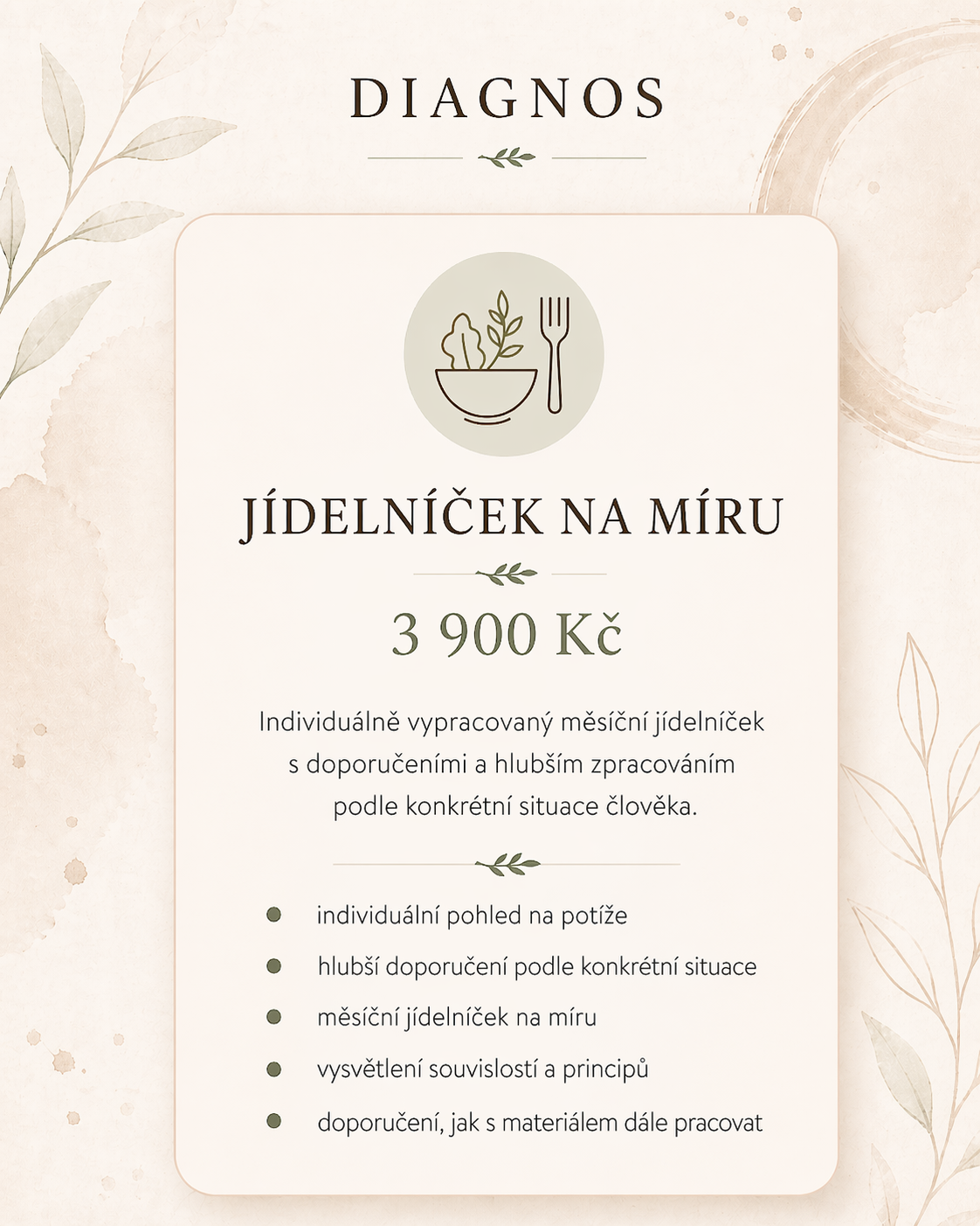 JÍDELNÍČEK NA MÍRU je vhodný pro ty, kteří chtějí hlubší individuální vedení a měsíční plán vytvořený podle své konkrétní situace.